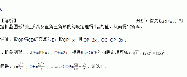 如图,将半圆形纸片折叠,使折痕CD与直径AB平行,的中点P落在OP上的点P'处,且OP'=OP,折痕CD=2,则tan∠COP的值为( )
