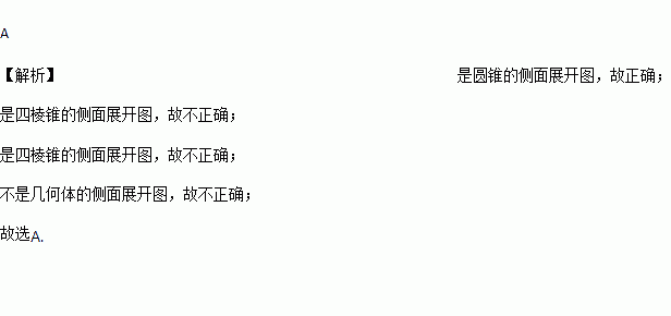 下面的图形中,是圆锥的侧面展开图的是( )