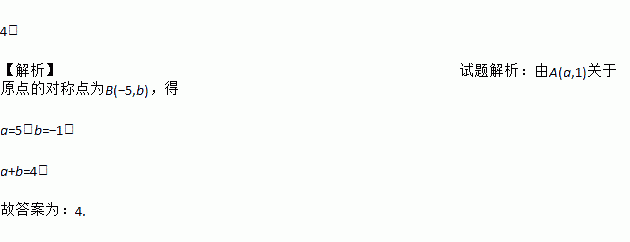 已知点A(a,1)与B(-5,b)关于原点对称,则a+b的值是 .