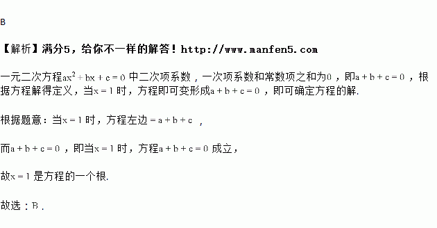 已知一元二次方程ax2+bx+c=0中二次项系数,一次项系数和常数项之和为0,那么方程必有一根为( )