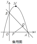 如图,已知直线y=﹣x+3与x轴、y轴分别交于A,B两点,抛物线y=﹣x2+bx+c经过A,B两点,点P在线段OA上,从点A以1个单位/秒的速度匀速运动;同时,点Q在线段AB上,从点A出发,向点B以个单位/秒的速度匀速运动,连接PQ,设运动时间为t秒.