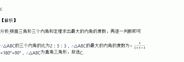 若△ABC的三个内角的比为2:5:3,则△ABC的形状是( )