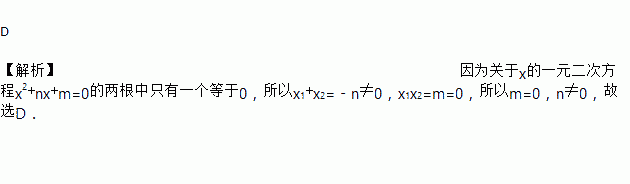 关于x的一元二次方程x2+nx+m=0的两根中只有一个等于0,则下列条件正确的是( )