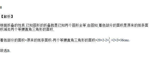 如图①所示,将长为20 cm,宽为2 cm的长方形白纸条,折成图②所示的图形并在其一面着色,则着色部分的面积为( )