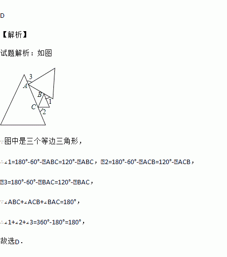 如图,是三个等边三角形随意摆放的图形,则∠1+∠2+∠3等于( )