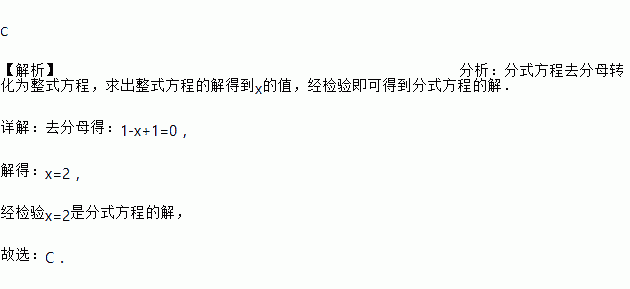 A. x=0 B. x=1 C. x=2 D. 无解
