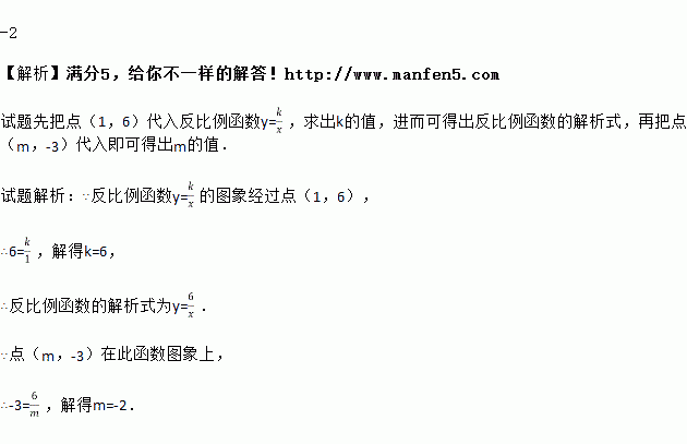 反比例函数y=的图象经过点(1,6)和(m,﹣3),则m=_____.
