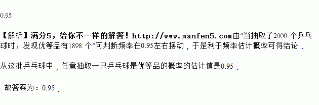 在进行某批乒乓球的质量检验时,当抽取了个乒乓球时,发现优等品有个,则这批乒乓球“优等品”的概率的估计值是_________(精确到).