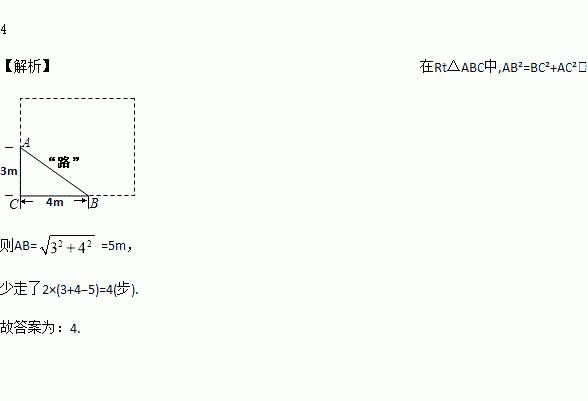 学校有一块矩形的花圃如图所示,有少数的同学为了避开拐角走“捷径”,在花圃内走出了一条“路”,他们仅仅少走了__步(假设1米=2步),却踩伤了花草,所谓“花草无辜,踩之何忍”!