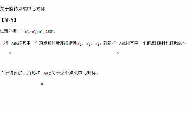 如图,将△ABC绕其中一个顶点顺时针连续旋转n′1、n′2、n′3所得到的三角形和△ABC的对称关系是 .
