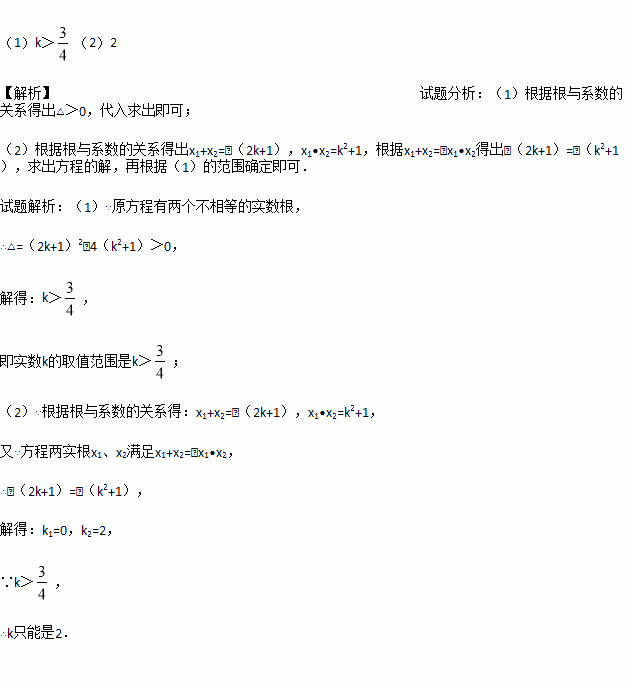 关于x的一元二次方程x2+(2k+1)x+k2+1=0有两个不等实根x1、x2