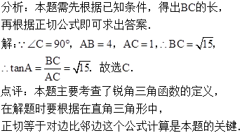 ,AB=4,AC=1,则tanA的值是( )