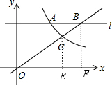 (2)如图,在反比例y=$\frac{k}{x}$(x>0)上有一点C,过A点的直线l⊥y轴,并与OC的延长线交于B,且OC=2BC,求点C的坐标.