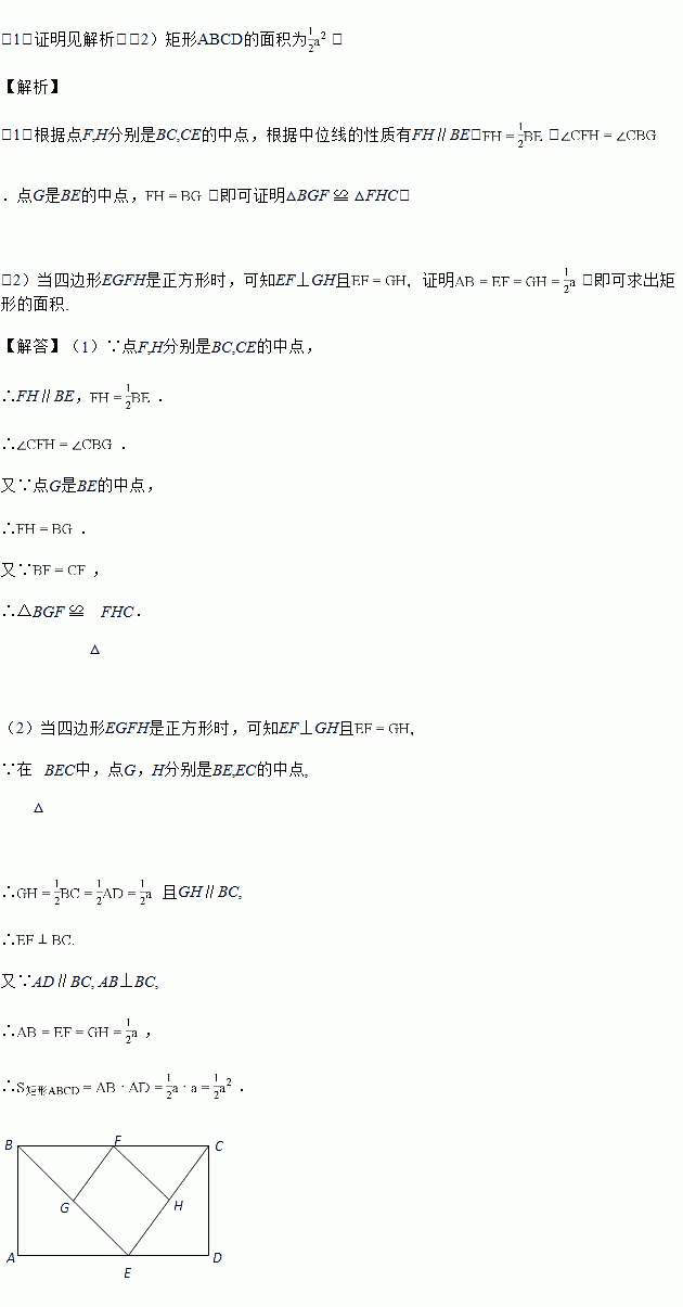 (2)设AD=a,当四边形EGFH是正方形时,求矩形ABCD的面积.