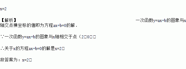 如图所示,一次函数y=ax+b的图象与x轴相交于点(2,0),与y轴相交于点(0,4),结合图象可知,关于x的方程ax+b=0的解是_____.