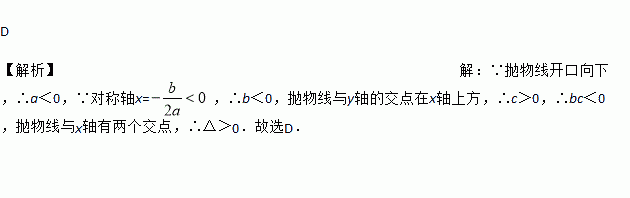 A. a>0,bc>0,△<0 B. a<0,bc>0,△<0