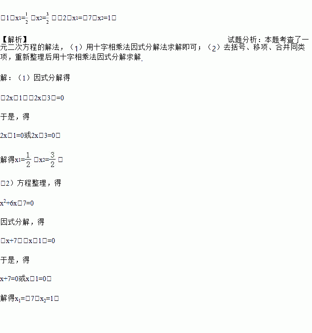 解方程:(1)4x2﹣8x+3=0;(2)x(x+6)=7