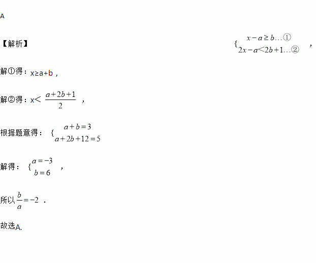 已知关于x的不等式组的解集为,则的值为 ( ).