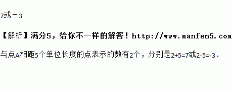 数轴上点A表示的数是2,那么与点A相距5个单位长度的点表示的数是 .