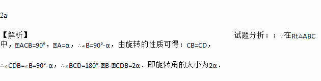 如图,在Rt△ABC中,∠ACB=90°,∠A=α,将△ABC绕点C按顺时针方向旋转后得到△EDC,此时点D在AB边上,则旋转角的大小为______.