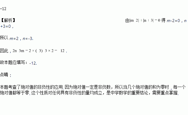 若|m-2|+|n+3|=0,则2n-3m=_______.