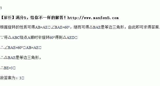 如图,将绕点顺时针旋转得到,若线段,则________.