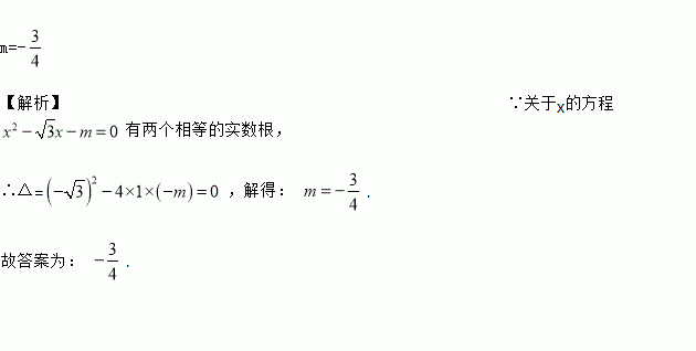 若关于x的方程有两个相等的实数根,则m的值是_________.
