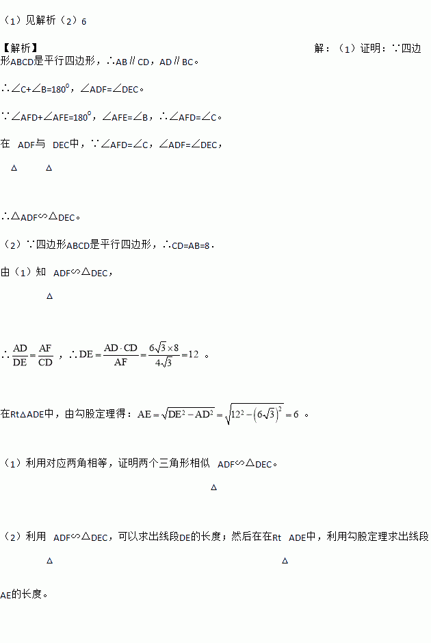 (2)若AB=8,AD=6,AF=4,求AE的长.