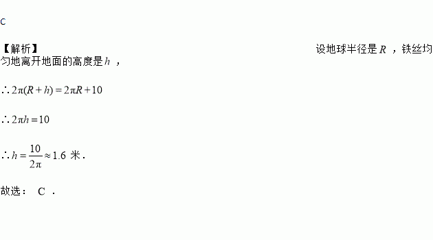 设想有一根铁丝套在地球的赤道上,刚好拉紧后,又放长了