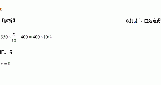 某种衬衫的进价为400元,出售时标价为550元,由于换季,商店准备打折销售,但要保持利润不低于10%,那么至多打( )