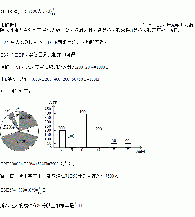 (2)若全市约有3万名在校学生,试估计全市学生中竞赛成绩在71~90分的人数约有多少?