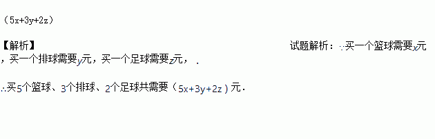 买一个篮球需要x元,买一个排球需要y元,买一个足球需要z元,买5个篮球、3个排球、2个足球共需要___________元.