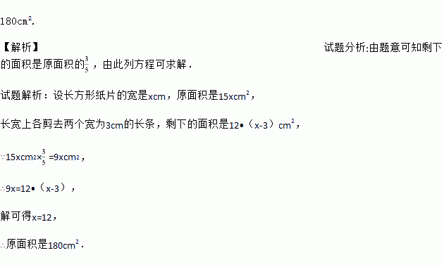 长方形纸片的长是15㎝,长宽上各剪去两个宽为3㎝的长条,剩下的面积是原面积的.求原面积.