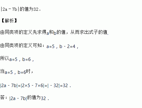 已知6xay4与﹣x5yb﹣2是同类项,求|2a﹣7b|的值.