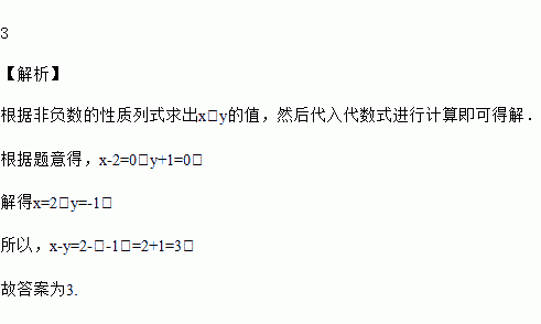 已知实数x,y满足+(y+1)2=0,则x﹣y等于_____.