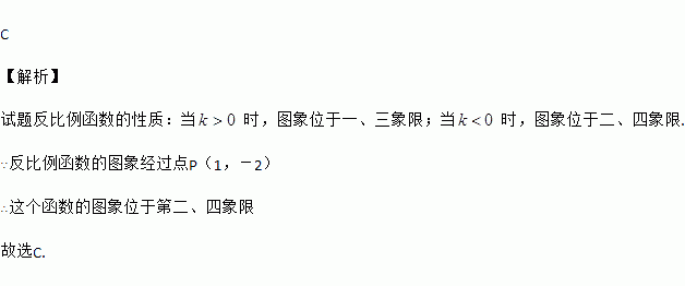 已知反比例函数的图象经过点P(1,-2),则这个函数的图象位于( )