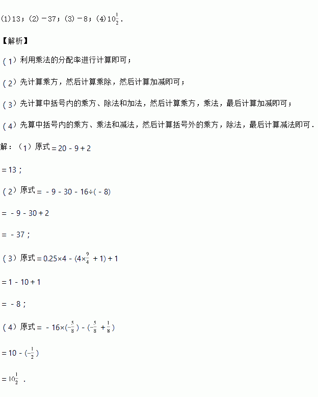 (2)-9+5×(-6)-(-4)2÷(-8);
