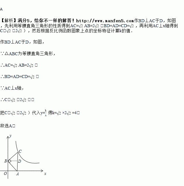 如图,在平面直角坐标系中,等腰直角三角形ABC的顶点A、B分别在x轴、y轴的正半轴上,∠ABC=90°,CA⊥x轴,点C在函数y=