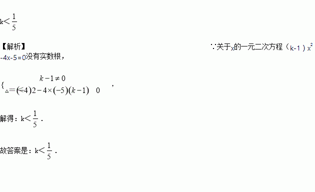若关于x的一元二次方程(k﹣1)x2﹣4x﹣5=0没有实数根,则k的取值范围是_____.