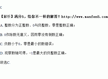 A. 零是整数 B. 零没有倒数 C. 零是最小的数 D. -1是最大的负整数