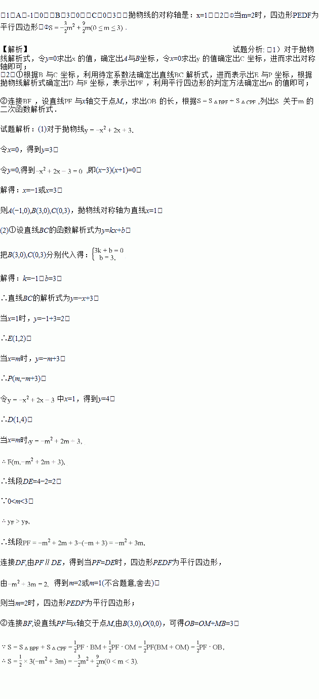 ①用含m的代数式表示线段PF的长,并求出当m为何值时,四边形PEDF为平行四边形?