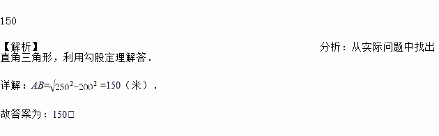 如图,某人欲从点A处入水横渡一条河,由于水流的影响,他实际上岸的地点C偏离欲到达的地点B200m,结果他在水中实际游了250m,求该河流的宽度为________m.