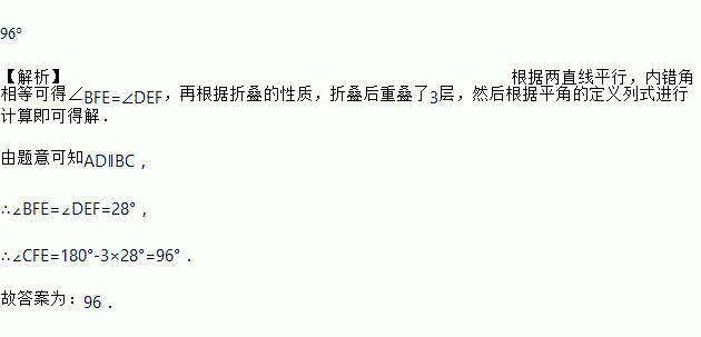 如图a是长方形纸带,∠DEF=28°,将纸带沿EF折叠成图b,再沿BF折叠成图c,则图c中的∠CFE=______°.
