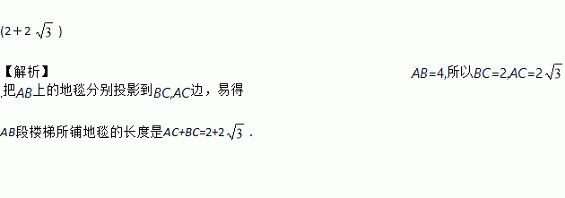 某楼梯的侧面图如图17-Z-6所示,其中AB=4米,∠BAC=30°,∠C=90°,因某种活动要求铺设红色地毯,则在AB段楼梯所铺地毯的长度应为________米.
