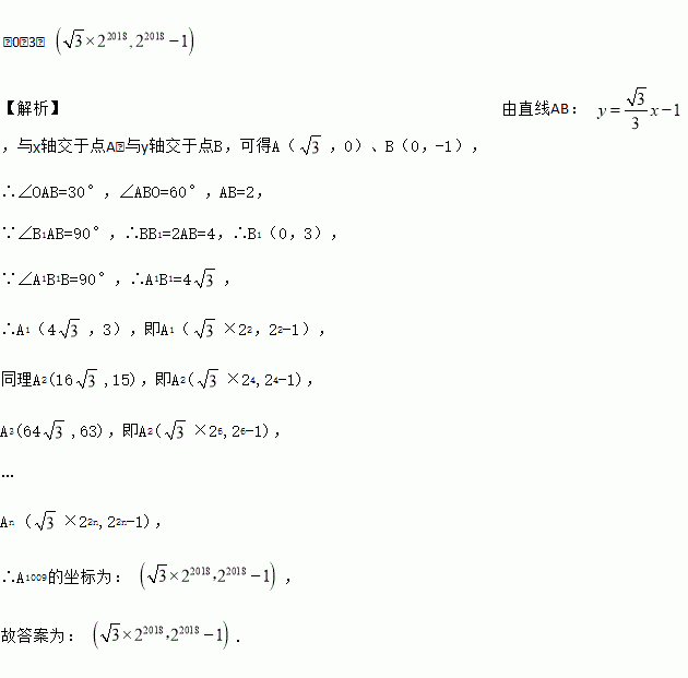 …,按此作法继续下去,则点B1的坐标为_______,A1009的坐标为______.