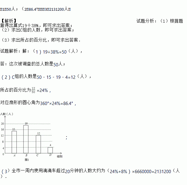 (3)若全市的总人数为666万,试求全市一周内使用滴滴打车超过20分钟的人数大约有多少?