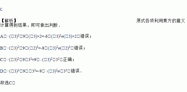 A. (-3)2=(-3)×2 B. (-3)2=(-2)3 C. (-3)2=32 D. (-3)2=-32