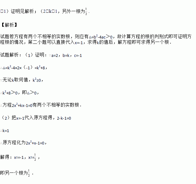 已知:关于 x 的方程 2x2+kx﹣1=0.