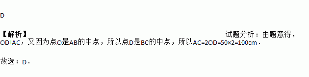 如图,跷跷板AB的支柱OD经过它的中点O,且垂直与地面BC,垂足为D,OD=50cm,当它的一端B着地时,另一端A离地面的高度AC为( )