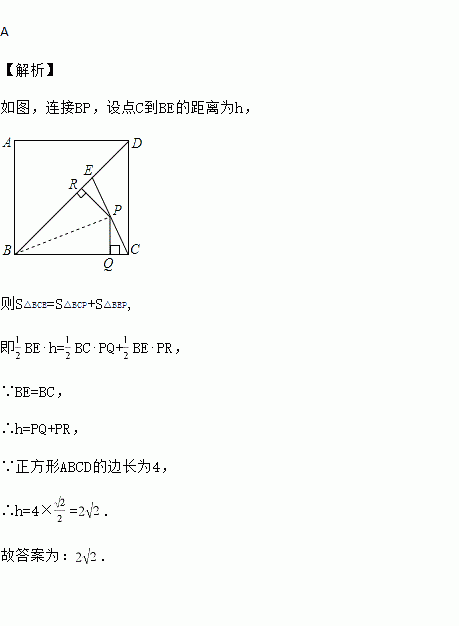 如图,E是边长为4的正方形ABCD的对角线BD上一点,且BE=BC,P为CE上任意一点,PQ⊥BC于点Q,PR⊥BR于点R,则PQ+PR的值是( )